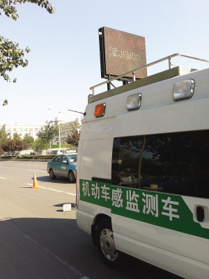 昨天上午,南開區水上公園西路停着1輛白色汽車,車頂上裝有一面LED屏幕,它就是新引進的遙感監測車。利用路障,過往車輛會減速經過監測車,它便可以工作。