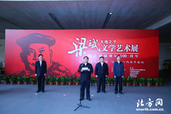 天津北方網訊:爲紀念樑斌誕辰100週年,由中國文聯、市委宣傳部共同主辦的“大地之子——樑斌文學藝術展”16日在天津美術館開幕。市委常委、市委政法委書記散襄軍,市委常委、市委宣傳部部長成其聖,中國文聯、中國作協等有關方面負責同志出席開幕式,並與市民羣衆一同參觀展覽。