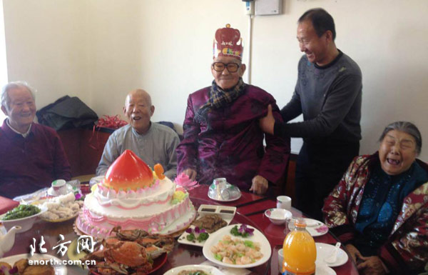 天津北方網訊:“祝你生日快樂,祝你生日快樂,祝老爺子身體健康,萬事如意……”這熱鬧的場面,歡快的笑聲,是大張莊鎮還遷區村民張廣增老人正在過九十歲大壽,一身大紅綢緞棉衣的老人笑呵呵地坐在沙發上。兒孫們依次給老人祝壽祈福,唱生日歌、切蛋糕、表演節目,老人高興得合不攏嘴。五代同堂,六十多人的大家庭聚會在一起,整個畫面溫馨和諧,其樂融融。