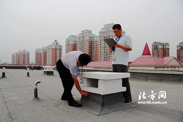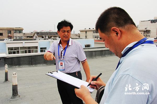 與綜合檢查驗收組成員一起,北方網新媒體記者爬上金傑裏小區3號樓的樓頂。“對舊樓區屋頂的改造主要是加裝7公分保溫板、3公分細石混凝土、3+3防水卷材。抽查時,我們一是看施工材料,二是看施工工藝。以屋頂驗收爲例,我們檢查平整度、泛水坡度是否達標,檢查‘溝、根、邊、嘴、沿’等細節部位是否符合防水要求。我們還會對現場拍照,登記,如果抽查不合格,便認定同時開工的整個批次不合格,要求施工單位重新整改,7天后進行二次複查,直到合格爲止。”天津市舊樓區提升改造指揮部驗收組組長張智偉說,從抽查結果來看,反映最突出的問題是管線配套不到位,照明線路、電源線和電錶接法不規範等。