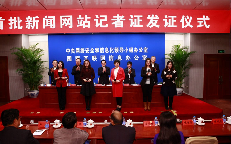 11月6日,國家互聯網信息辦公室、國家新聞出版廣電總局在京聯合舉行首批新聞網站記者證發證儀式,爲人民網、新華網、光明網等14家中央主要新聞網站首批594名記者發放新聞記者證。國家互聯網信息辦公室副主任徐麟、國家新聞出版廣電總局副局長吳尚之出席並講話。