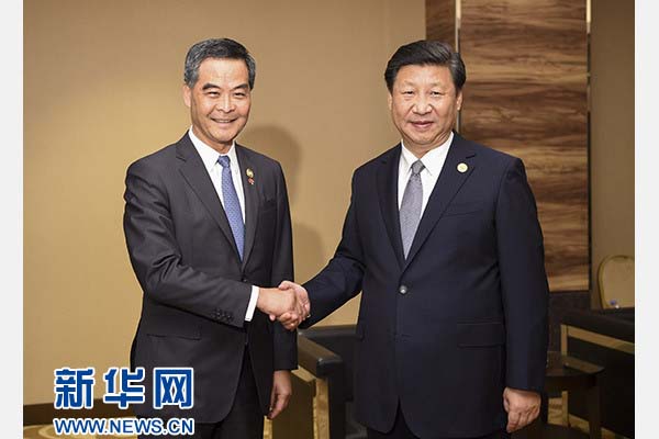 國家主席習近平18號下午在菲律賓首都馬尼拉會見了前來出席亞太經合組織第二十三次領導人非正式會議的香港特別行政區行政長官樑振英。