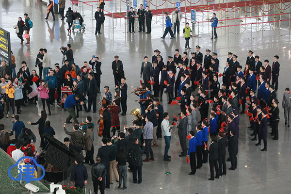 天津北方網訊:2月19日,正月十五元宵佳節,過完這天,己亥新春也正式結束了。這麼難得的日子怎麼能悄悄過去,一場激動人心的快閃活動在天津機場候機樓上演。
