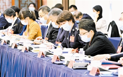 天津代表團代表認真履職。 海河傳媒中心記者 杜建雄攝