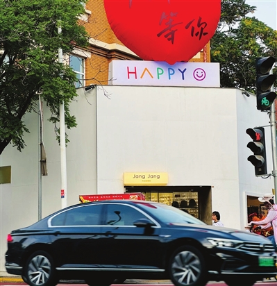 記者注意到,位於赤峰道與新華路交口的一家外牆全為白色的飾品店,憑借在屋頂掛上印有“天津等你”四個大字的“心形”紅色氣球,成為年輕游客的熱門“打卡”地之一。