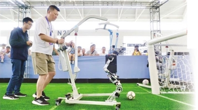 類人組足球機器人賽前准備。