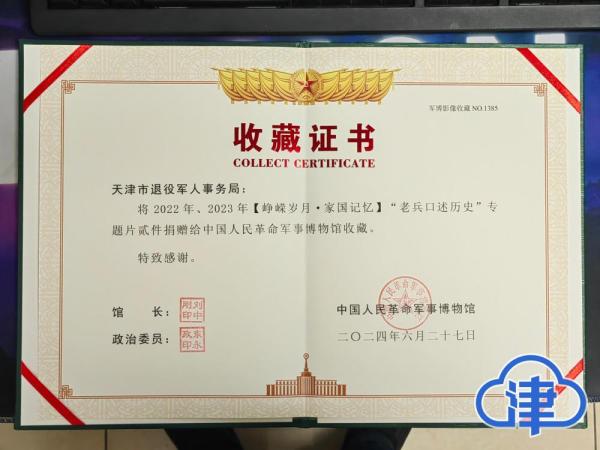 2024年,《崢嶸歲月·家國記憶》老兵口述歷史專題片被中國人民革命軍事博物館永久收藏,在津功勛老兵的“個體記憶”上昇為“國家記憶”,成績的背後,是主創團隊秉持著為英雄立傳、為紅色傳承、為歷史負責的堅定信念,精心打磨每一個細節,纔使得這些珍貴的記憶得以完整留存,讓英雄的光芒永不磨滅,讓紅色血脈代代賡續。