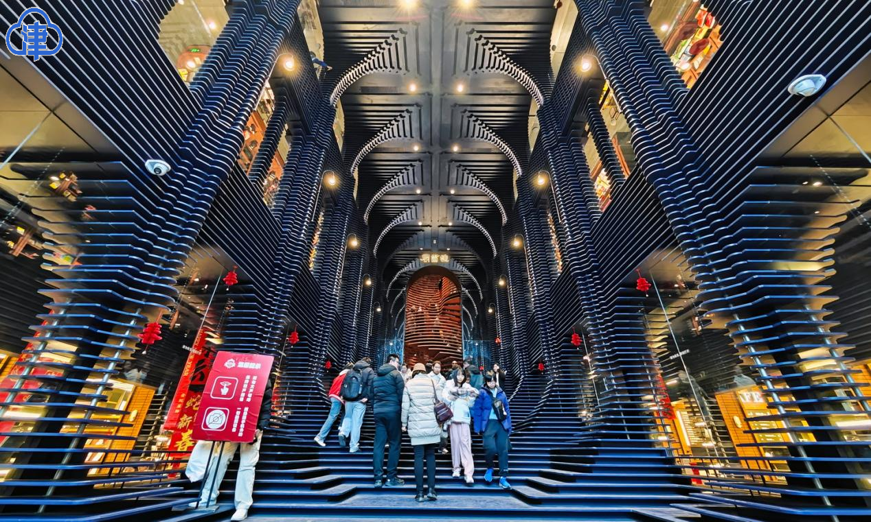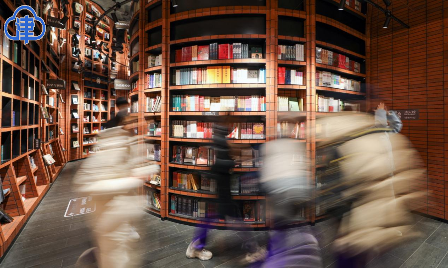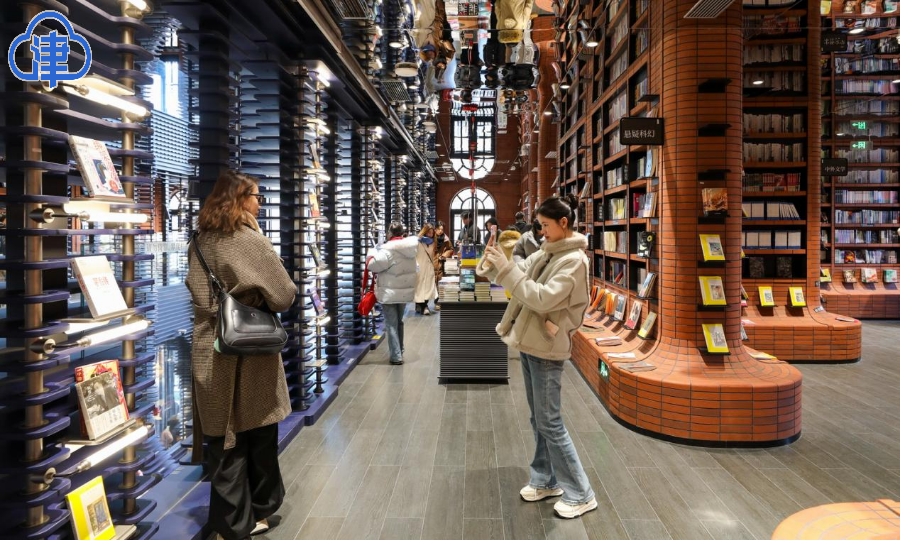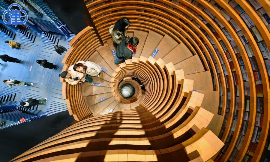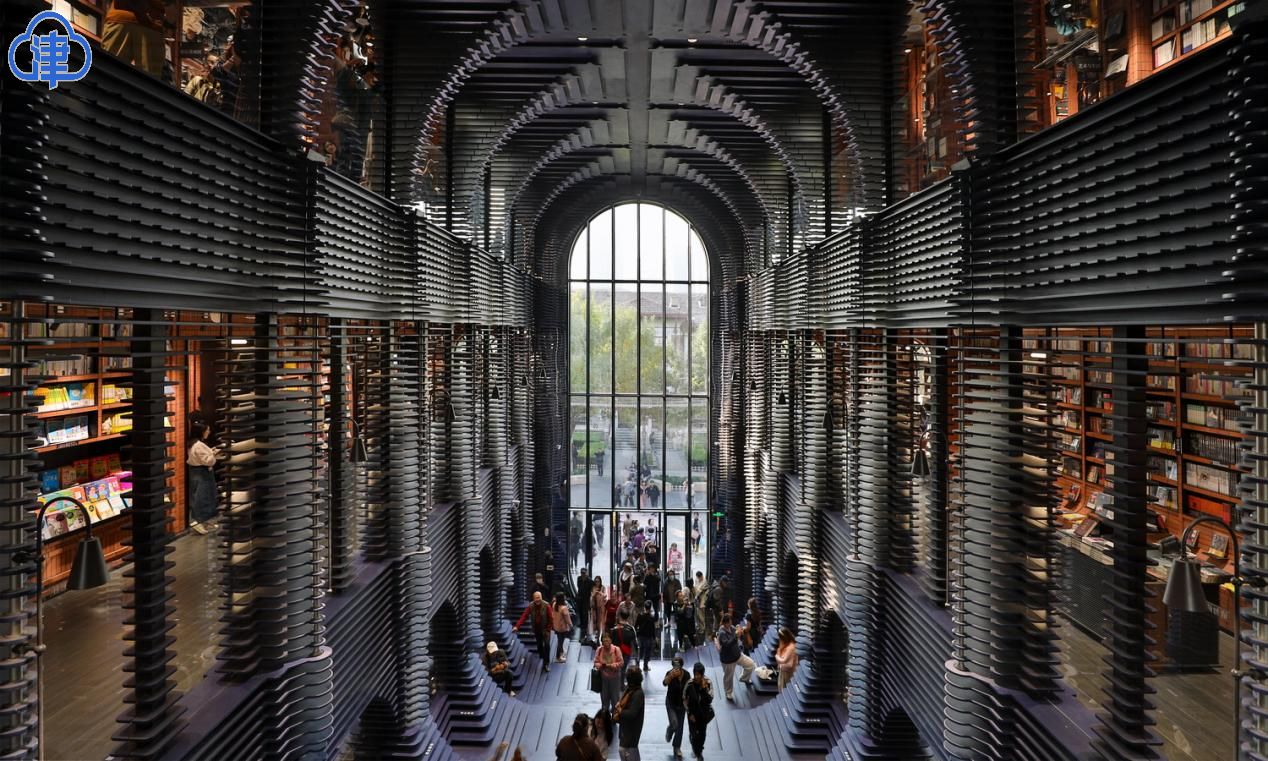 書店內部設計立體深遠,圖書沿著兩側的立柱擺放,臺階為讀者提供了閱讀和交流的空間。書店內還設有長廊式樓梯和360°旋轉樓梯,連接二、三層空間,增添了藝術氣息和探索樂趣。鍾書閣不僅為市民提供了一個集閱讀、休閑、文化交流於一體的理想場所,還成為天津的文化新地標和網紅打卡點。(津雲新聞記者 吳濤)