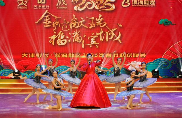 此外,在天津銀行·2025“春晚我來了”全民纔藝大賽中獲得優異成績的表演者也如願登上了“濱城春晚”的舞臺。大賽冠軍獲得者孟艷紅身著一身紅色的艷麗服裝,高歌一曲《樹梢上的芭蕾》,“這首歌的詞曲輕盈、優雅、自由,希望能給觀眾朋友們送上一份新春的問候和祝福。”孟艷紅說道。情景劇《春晚我來了》更是以戲謔幽默的方式講述了大賽臺前幕後的趣事兒。“這個節目在創排時,大賽導演組跟我們說了很多比賽時真實發生的場景,這也給了我們很多靈感,相信一定能為大家帶來快樂!”表演者星號告訴記者。