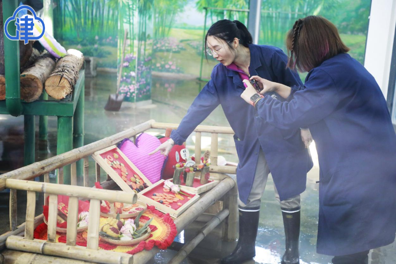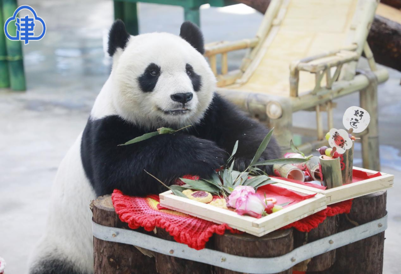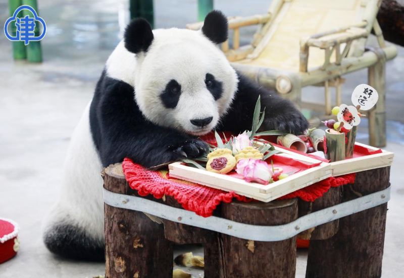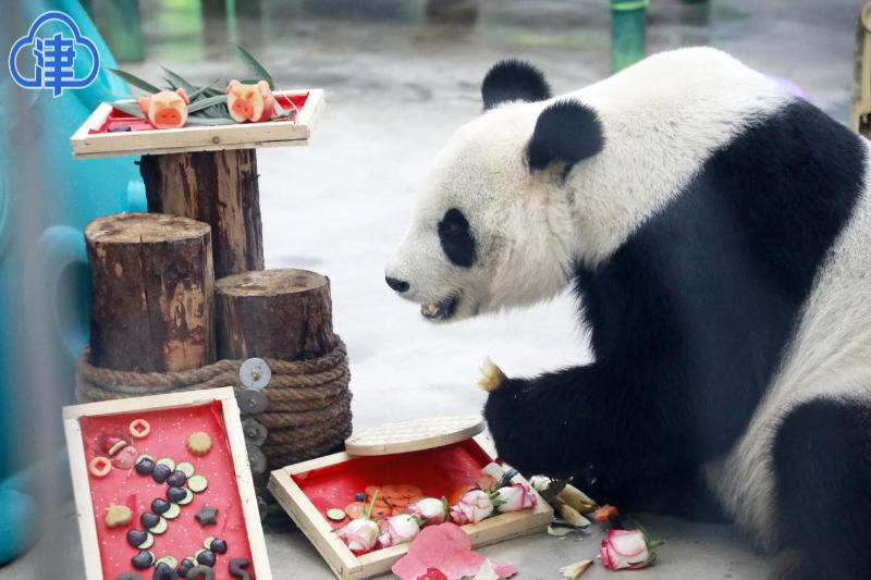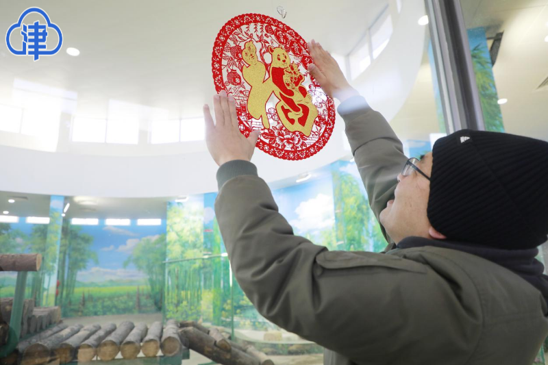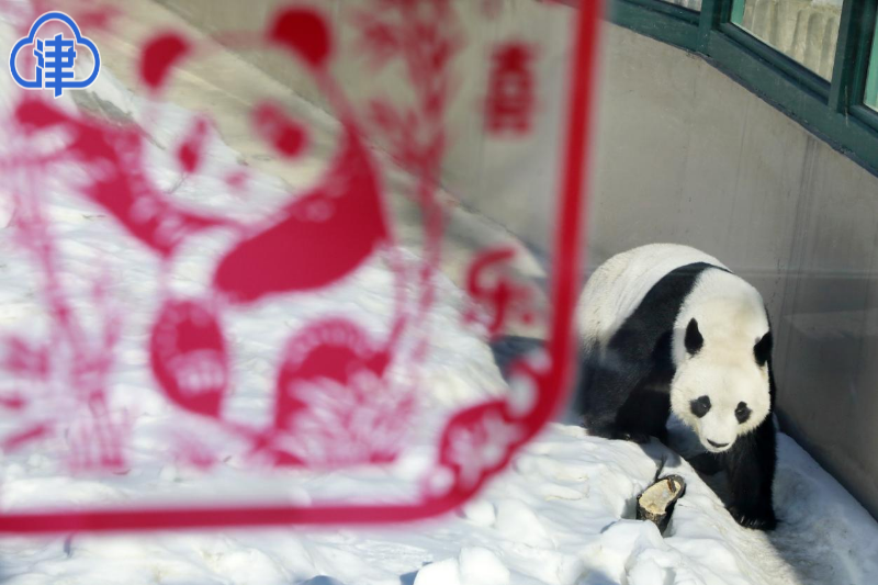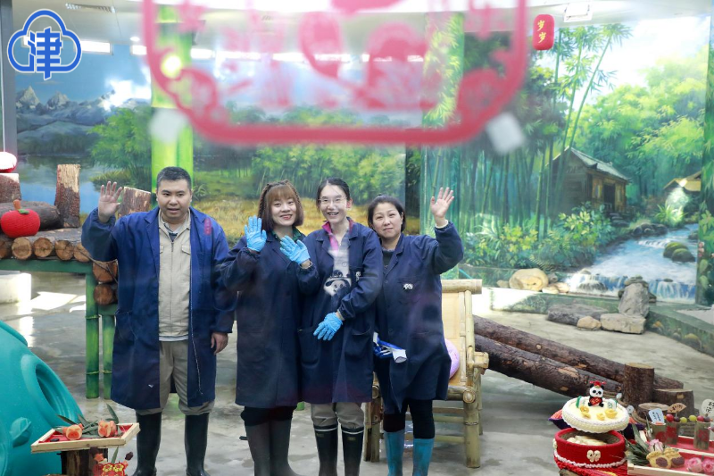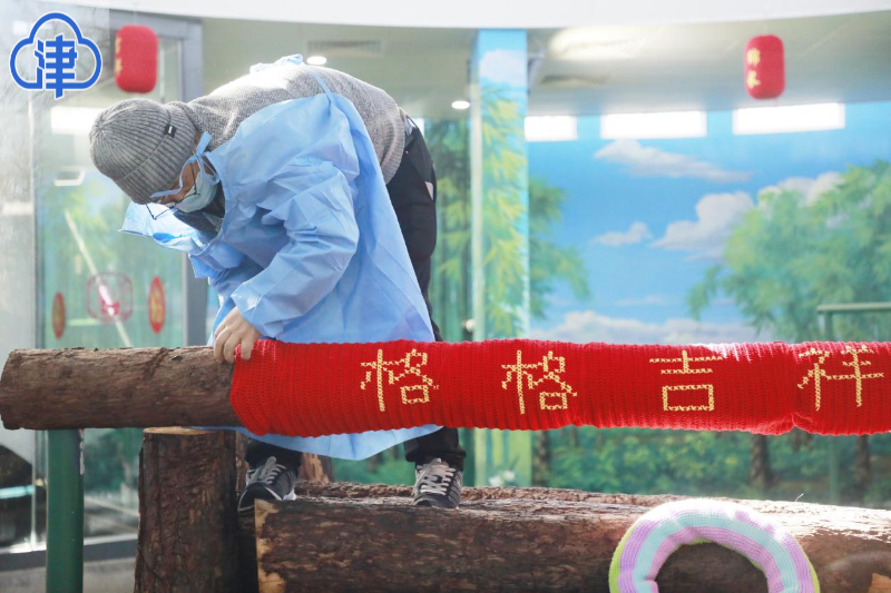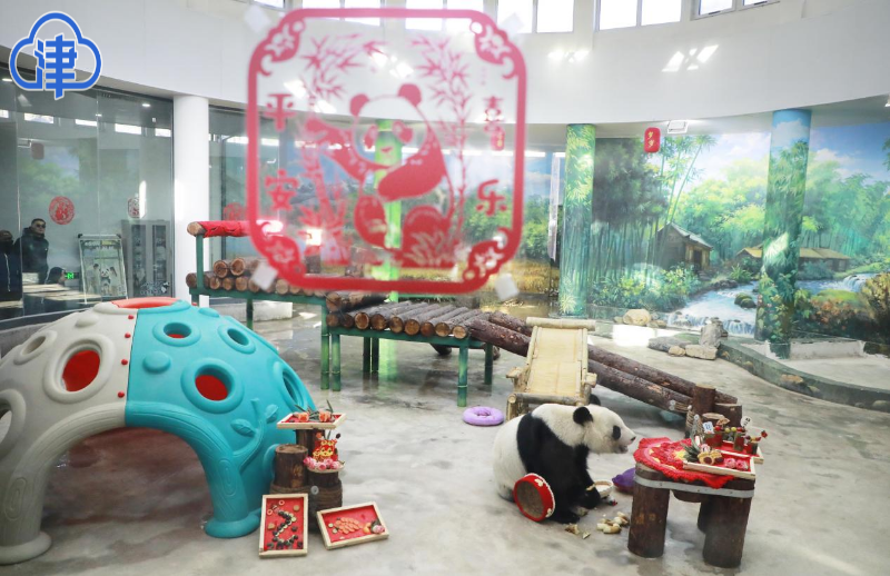 天津北方網訊:除夕將至,天津動物園熊貓館內張燈結彩、裝扮一新,飼養員們將精心准備的年夜大餐端上桌。“肥豬拱門”“福氣滿滿”“蛇麼都好”“甜甜蜜蜜”“金蛇送福”“年年有餘”六道豐盛的年夜飯被陸續擺上“桌”,別具一格的擺盤加上專業的營養搭配,讓喜樂和格格吃得有滋有味,提前感受到新春的熱鬧氛圍。