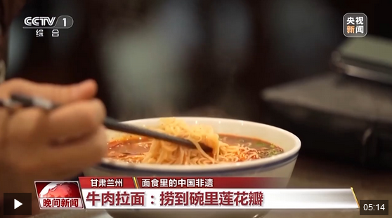 蘭州牛肉拉面第四代傳承人 馬文斌:行話說“三分下,七分撈”。煮好的面條撈起來微微發黃,發亮,看起來很好看,也不斷。“下到鍋裡團團轉,撈到碗裡蓮花瓣。”
