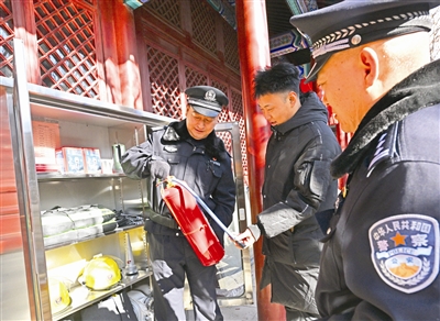 對古文化街治安派出所來說,春節前夕的重點工作就是排查隱患。為了確保春節期間的安全,王雙健這些天對片區的消防安全進行了一系列排查,包括線路、消防出入口、消防設施,檢查後發現問題及時與管委會溝通,不符合要求的及時更改。此前有群眾反映,還沒進景區就聽到掛在牆上的大喇叭循環播放商家的叫賣聲,王雙健意識到,群眾反映的問題極易造成更大的矛盾糾紛,於是,他們以古文化街派出所的名義給管委會發函,派出所和管委會溝通協同配合,產生噪音的喇叭被及時拆除。