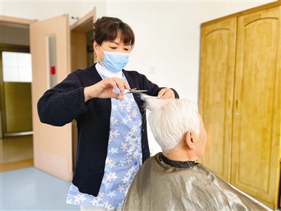 記者采訪前,宋愛紅剛給84歲的陸爺爺剪完指甲,『先得泡腳,把指甲泡軟了再剪,老人剪完挺舒服的,還給我點贊呢。』陸爺爺到院裡時間不長,在宋愛紅的幫助下,很快就適應了這裡的生活,天氣不錯的時候,宋愛紅總會推著輪椅,帶陸爺爺遛一遛,呼吸一下室外的空氣。『我主要負責6個老人,最大的90多歲,最小的也快70歲了,平均年齡超過80歲,老人們都特別可愛,但大部分人都得喂飯,大小便也不能自理,這都需要我來幫助,他們一個手勢,我就明白什麼意思。過年期間留下來,也是因為他們離不開我。』