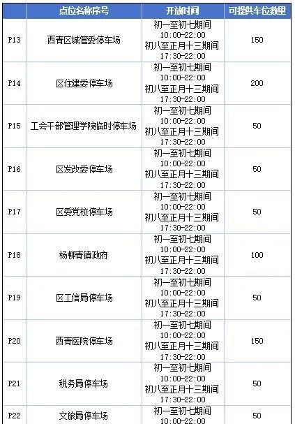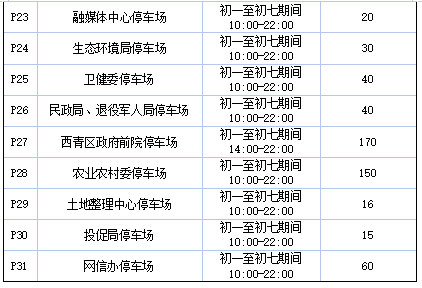 春節期間(1月29日至2月10日)期間,開放停車場如圖所示: