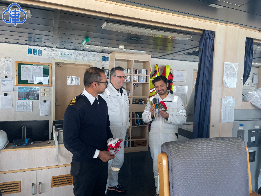天津北方網訊:1月29日,正值農歷大年初一,大港邊檢站執勤一隊民警在登輪辦理剛剛停靠在中石化LNG碼頭的10萬噸級液化天然氣船舶“弗瓦埃娜”輪入境邊防檢查手續時,首先向船員們送上暖心祝福,同時還向船員們送上了附有大港港區地圖和出行內容的“暖心紅包”,並與船員一起在外輪張貼大紅福字,掛上吉祥玩偶。