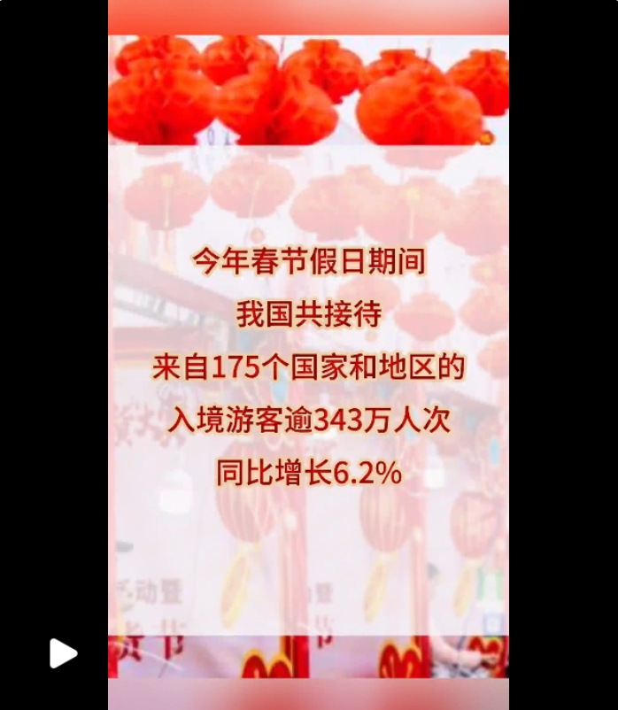 首個“非遺版”春節,普天同慶,五洲同春。“來華體驗中國年”,是其中一道動人的風景。中國的高鐵上、景區裡,時常可見外國游客的身影。數據顯示,今年春節假日期間,我國共接待來自175個國家和地區的入境游客逾343萬人次,同比增長6.2%。