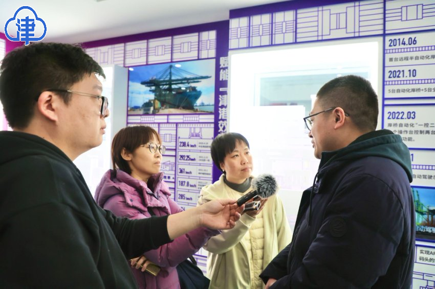 在全球首個智慧零碳碼頭——天津港碼頭,媒體團的記者們被工作人員的講解所深深吸引。一年來,這個被大家多次采訪的“老朋友”又“不出所料”地刷新了新紀錄:今年1月份,天津港集團完成集裝箱吞吐量198.3萬標准箱,同比增長5.3%,創下了歷史同期最好成績。