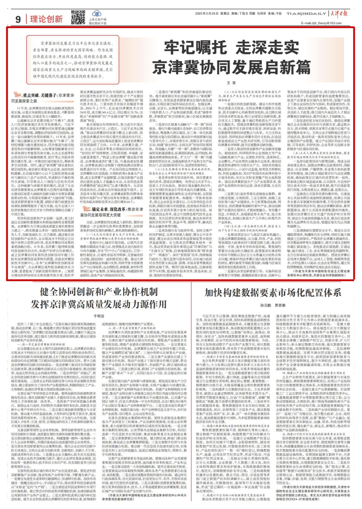一是更多發揮有效市場作用。深化要素市場化改革,搭建京津冀統一的勞動力共享平臺,促進人纔自由流動。推動區域金融機構合作,設立專項投資基金引導資本流向關鍵領域。完善數據要素流通機制和安全保護機制,全面提昇數據要素配置效率。構建統一開放市場體系,建立企業信息互通互認、公共信用信息共享機制,消除區域內市場壁壘,促進商品和服務自由流通,打造具有強大競爭力的區域市場。深化國資國企改革,建立中國特色現代國有企業制度。優化民營經濟發展環境,推動各種所有制經濟權利平等、機會平等、規則平等,解決民營企業融資難等問題。