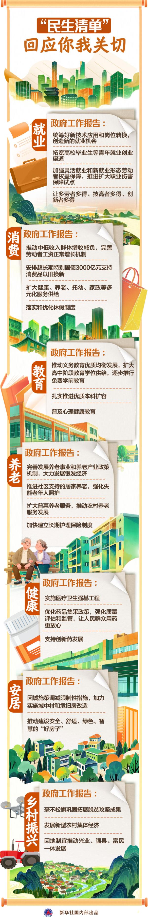 人民幸福安康是推動高質量發展的最終目的。梳理報告中有新意、有溫度的惠民政策,一份“民生清單”躍然眼前,勾勒出一幅幅與你我密切相關的民生圖景。