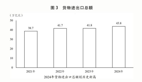 (六)加快建設更高水平開放型經濟新體制,高水平對外開放取得積極成效。全年貨物進出口總額43.8萬億元,服務進出口總額7.5萬億元,外商直接投資1162億美元,境外直接投資1438億美元。年末外匯儲備規模達32024億美元。