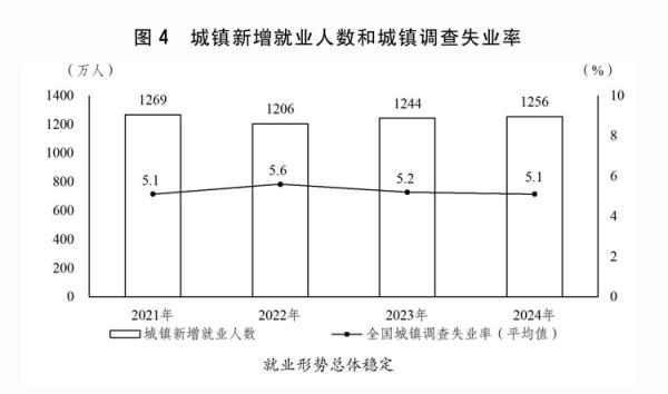 ——全國城鎮調查失業率5.5%左右,城鎮新增就業1200萬人以上。關於全國城鎮調查失業率,主要考慮:2025年重點人群就業壓力仍然較大,將城鎮調查失業率目標定為5.5%左右,與2024年保持一致,體現了加大穩就業力度的導向。關於城鎮新增就業,主要考慮:2025年需在城鎮就業的新成長勞動力規模進一步增加,就業總量與結構性矛盾依然突出,1200萬人以上的預期目標與2024年目標保持一致,能夠更好體現穩就業惠民生的力度和決心;同時,隨著經濟持續回昇向好,就業政策持續發力,實現這一目標是有支橕的。