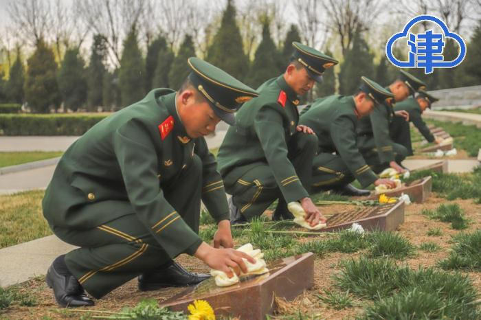 天津北方網訊:鐵血忠魂映山河,精神火炬永相傳。清明節前夕,武警天津總隊機動支隊某中隊的官兵們手捧菊花,前往駐地烈士陵園,官兵們來到這裡開展祭掃活動,紀念長眠此地的革命先烈。