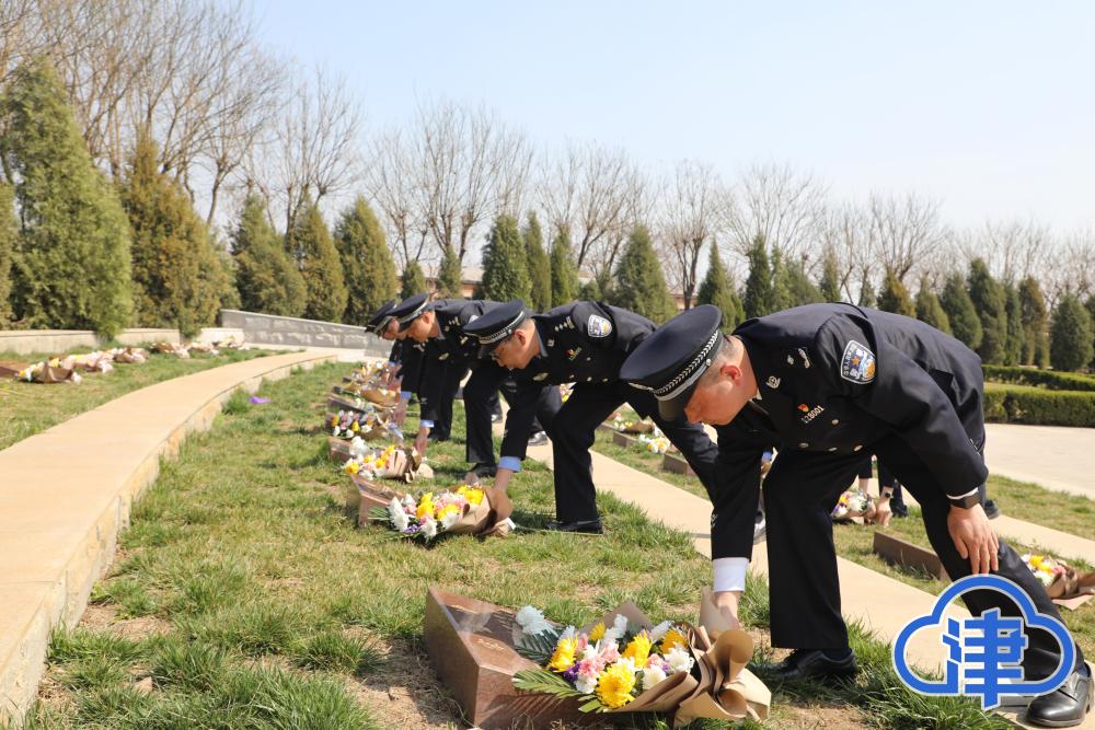 全體人員肅立、脫帽、默哀,以最朴素的方式表達了對革命先烈和公安英烈的沈痛哀悼和無限追思。最後全體人員依次向烈士紀念碑獻花,瞻仰英靈牆,表達崇高敬意,寄托無限哀思。