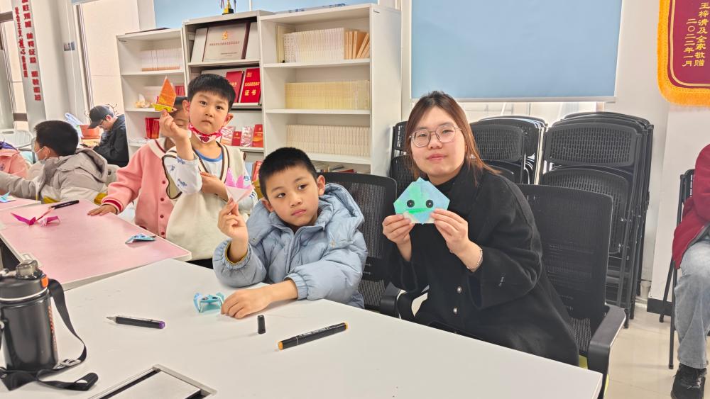 手工創作環節,在志願者的指導下,孩子們用彩紙、彩筆等材料制作了清明主題的手工作品,如折紙青蛙、風箏、柳條、青團等。這些手工創作不僅鍛煉了孩子們的動手能力,也讓他們在創作中進一步加對清明習俗的認識。