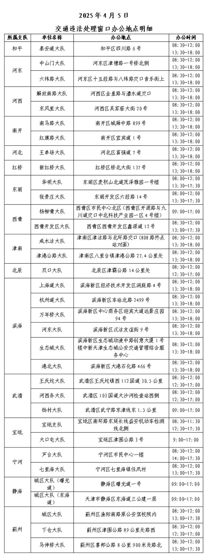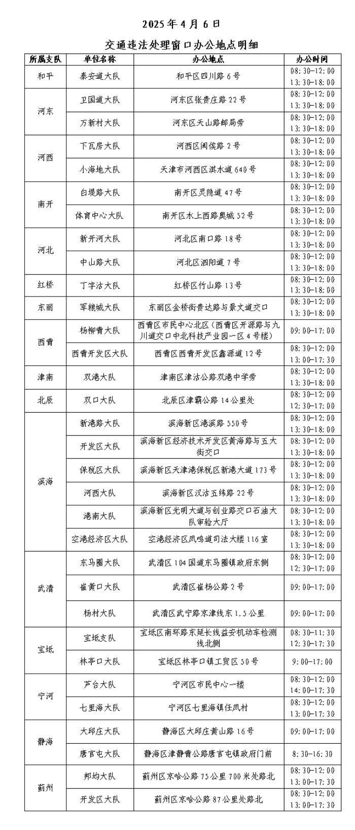 記者自交管部門了解到,清明節假期期間,為方便廣大駕駛人辦理非現場違法處理業務,公安交管部門公布我市違法處理窗口開放情況如下,市民可根據自身實際需求前往辦理。