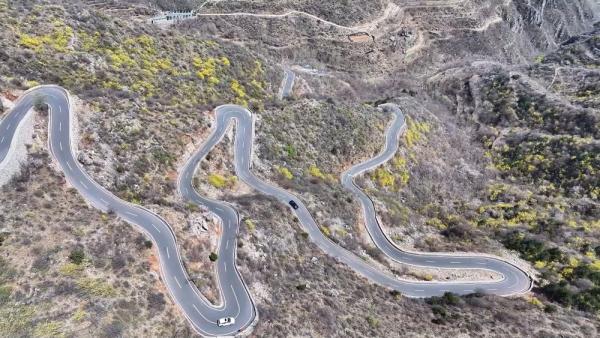 在河南新鄉衛輝市,一條條便捷的公路串聯起山間美景,游客在花海中感受美麗春天。