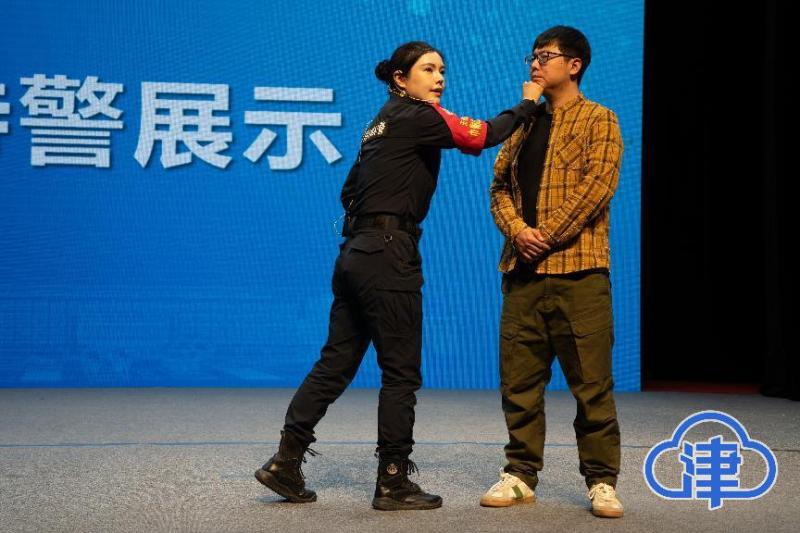 公安河西分局特警支隊西岸女子巡邏服務隊帶來的反詐舞臺劇《聰明反被聰明詐》,以及智算學部2024級本科生自編自演的《反詐風暴之母子雙劫》,用幽默與緊張交織的劇情,還原了真實詐騙場景。西岸女子巡邏服務隊還進行了防身術展示以及匕首操演示。這種“沈浸式”體驗,讓師生在笑聲與反思中掌握防詐要領。