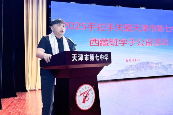 天津北方網訊:2025年6月11日上午,天津七中西藏班學子畢業歡送會暨優秀自強學子頒獎儀式舉行。天津市工商聯副主席、天津陽光義工愛心社社長張秀燕,河東區政協副主席、民進河東區委會主委盧錚松,民進河東區委會專職副主委趙常山,河東區教育局局長於曦,河東區審計局副局長何玲,民進河東區委會原專職副主委王玉,天津七中黨委書記張駿、校長王保慶、副校長王振紅,市青聯常委、天津陽光義工愛心社常務副社長潘彬煒,愛心企業家張月、郭玉靜、葉爽,以及天津七中全體西藏班學子等160多人參加活動。活動由天津七中民族處主任田曉明主持。