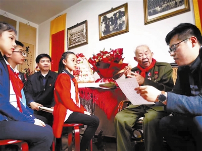 在天津警備區河西第二離職乾部休養所的“百歲老兵講黨史”活動中,他常從南昌起義講到開國大典,從游擊隊的游擊戰講到包鋼建設時與周總理的相遇。有一次,少先隊員指著他書桌上的書問起學習心得,他翻開畫滿紅線的書頁:“未來是你們的,要永遠跟黨走。”