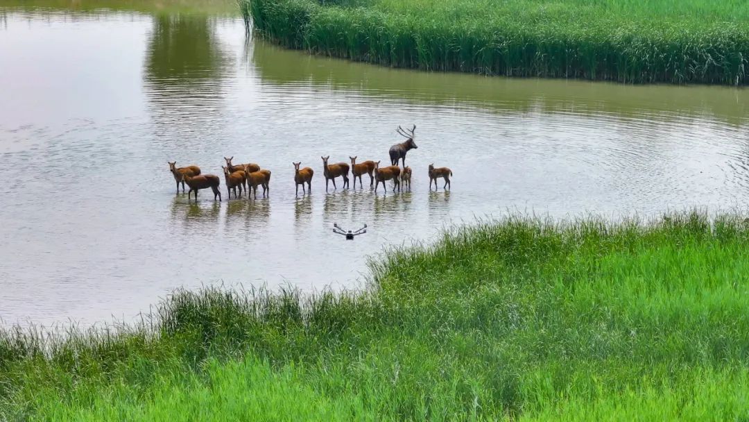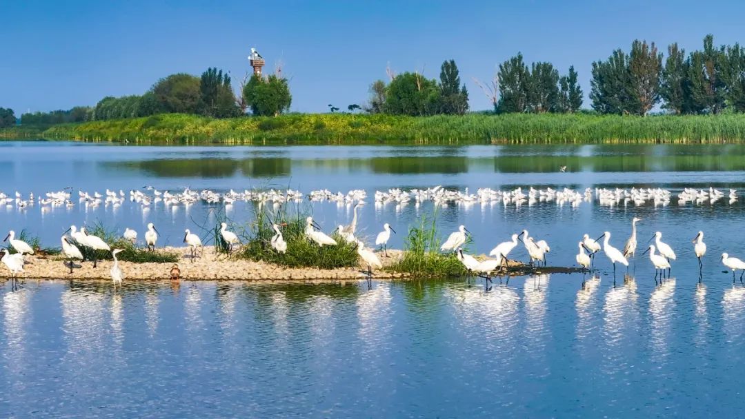 七裡海濕地的水域面積較之前擴大了50%,負氧離子濃度飆昇至每立方厘米10000個,生態環境的持續改善讓七裡海的物種圖譜發生顯著變化。以東方白鸛為例,2016年這裡還只有零星個體,到2025年種群數量已激增至4000—5000只,佔全球種群數量的近50%,而“明星”物種——麋鹿種群規模達到百餘頭,重現了“鹿鳴鶴舞”的千年盛景……在京津冀生態協同的大框架下,寧河區與北京、河北相關地區緊密合作,建立專業的數據共享平臺,定期上傳濕地水質、生物多樣性變化等數據。如今,七裡海濕地的水域面積已增至3.5萬畝,重拾濕地水韻,鳥類種類增至258種,成為京津冀人民共享的“生態綠肺”。