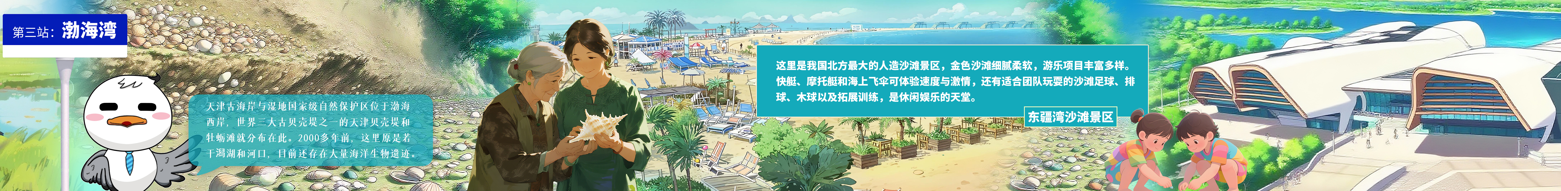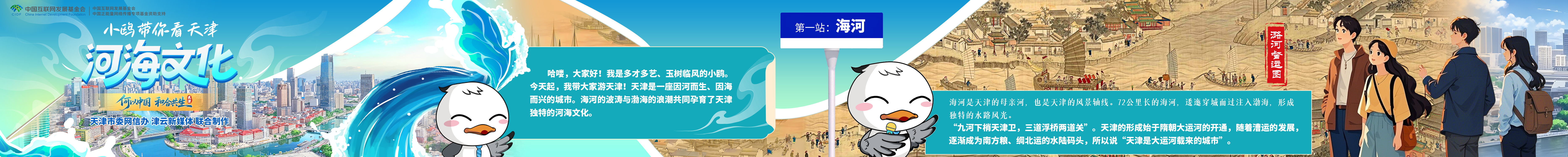 哈嘍,大家好!我是多纔多藝、玉樹臨風的小鷗。今天起,我帶大家游天津!天津是一座因河而生、因海而興的城市。海河的波濤與渤海的浪潮共同孕育了天津獨特的河海文化。