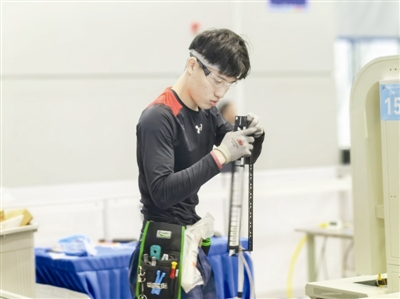 比技術更難的是心態。訓練期間的劉宇軒曾因旁邊選手的動作分神,甚至因緊張打亂節奏。教練的一句話點醒了他:“心不定,技術再精也白費。”此後,他被“特殊關照”——工位從安靜的訓練室搬到人來人往的食堂門口。烈日下接線、圍觀者注視中調試設備……起初心跳如鼓,後來竟慢慢習慣了“被打擾”。