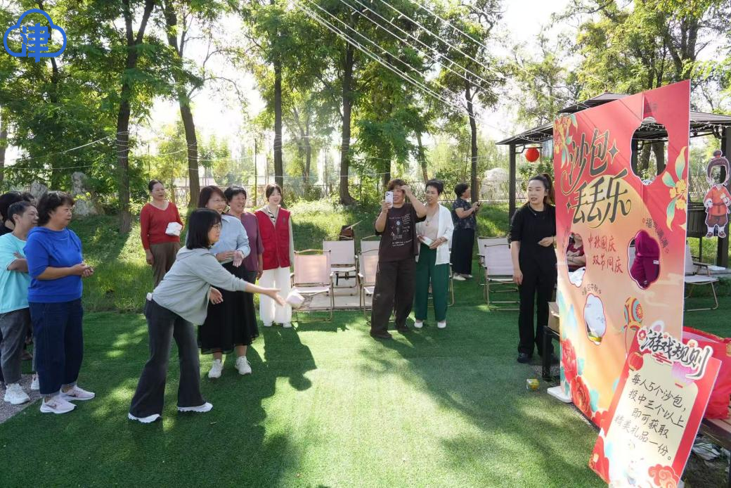 “快來看,我投進5個沙包全中厲害吧!”“行呀,劉奶奶您可厲害了!”9月27日,趕在中秋佳節前夕,北辰區青光鎮舉辦的中秋游園會在青光村青盛河畔農莊拉開帷幕,幾十戶村民歡聚一堂,手工區的剪刀聲、游戲區的歡笑聲、打卡區的快門聲此起彼伏,把團圓的喜悅撒滿場。