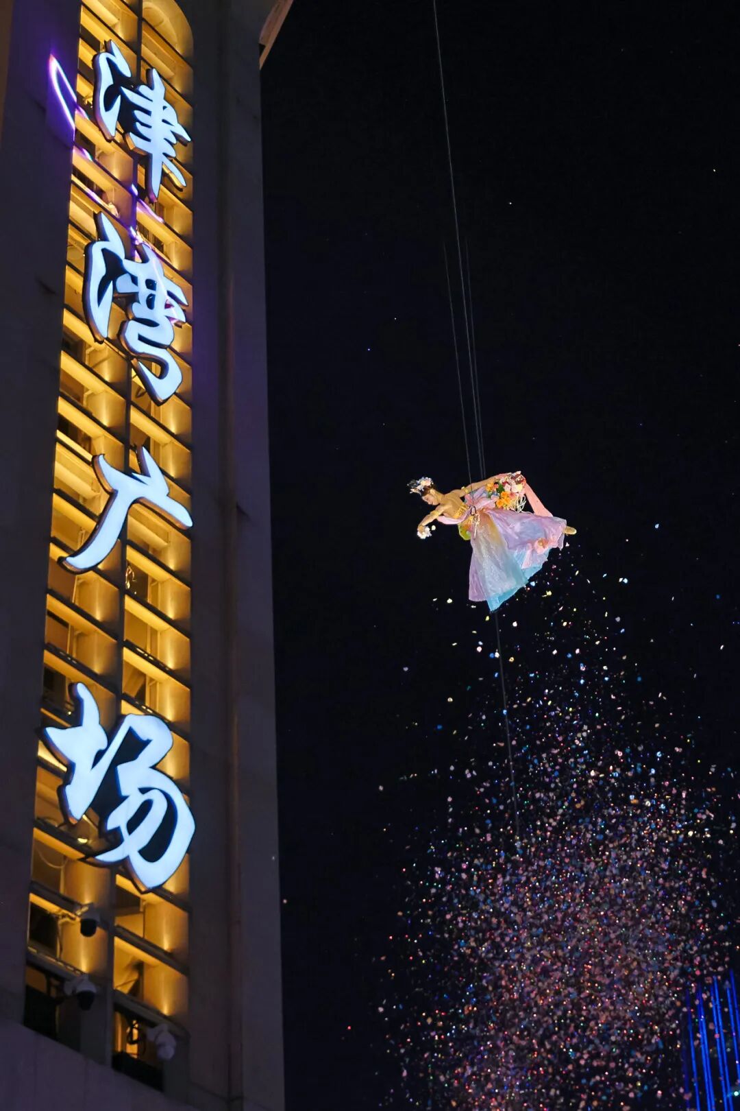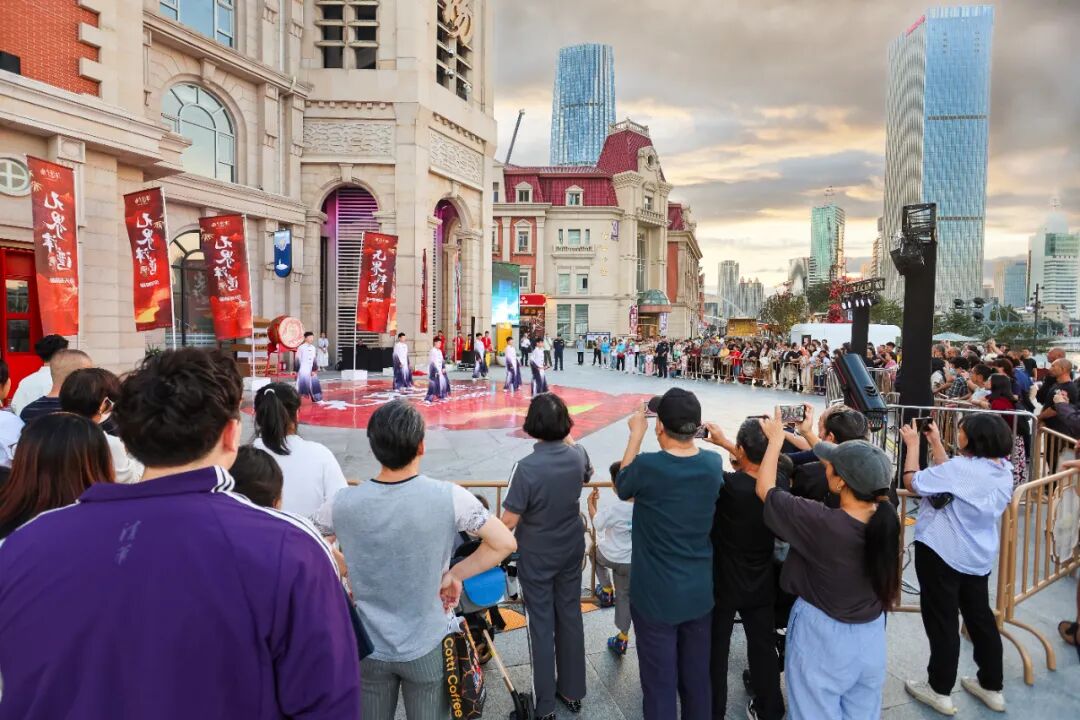 以津灣大劇院為核心舉辦“武林風世界冠軍巔峰戰”,實現專業賽事的集中呈現;親水平臺上演“洛神塔賦”(改編自《洛神水賦》)威亞飛天舞,讓藝術與海河景觀交融;城市U盤“口袋公園”打造“津門往事” 非遺展演區,主廣場上演《龍門金剛》等國風舞蹈,5號樓推出“無界秋季藝術展”……從封閉劇場到開放廣場,整個津灣都成為“處處是舞臺”的演藝載體。