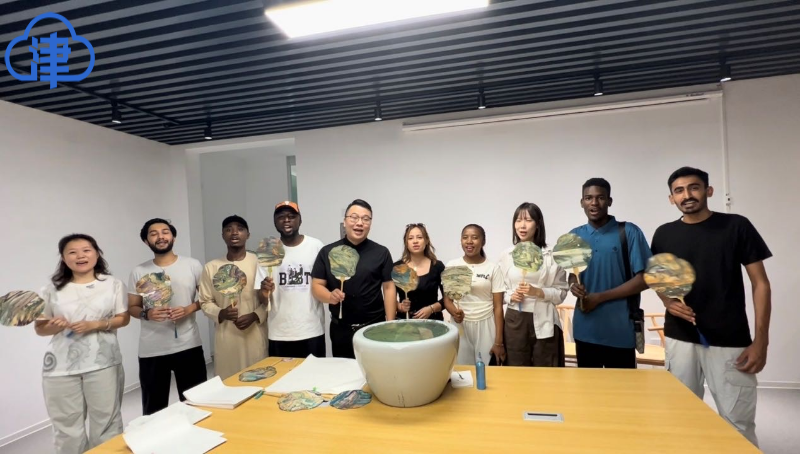 “雙節快樂!”10月1日下午,天津工業大學藝術學院裡,鄭勇和多國留學生一起手舉自己制作的漂流漆扇,面帶笑容地喊道。