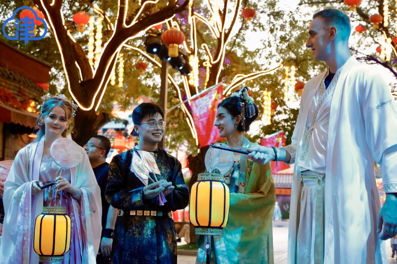 《一河千年水?萬載楊柳情》趕大營主題實景演藝每日常態上演,通過生動劇情與細膩演繹,展現楊柳青人的家國情懷。此外,身著傳統服飾的舞者手持花燈,用曼妙舞姿演繹中秋團圓故事,非遺戲曲等傳統技藝輪番登場,讓老一輩重溫記憶,也讓年輕一代感受深厚文化魅力。?