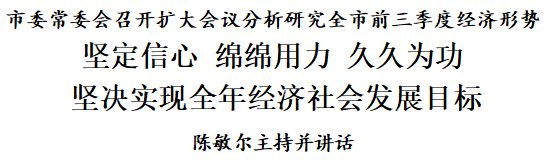 10月24日下午,市委常委會召開擴大會議,聽取我市前三季度經濟運行、政治安全、社會穩定和意識形態領域工作情況匯報,分析當前形勢,研究部署下步工作。
