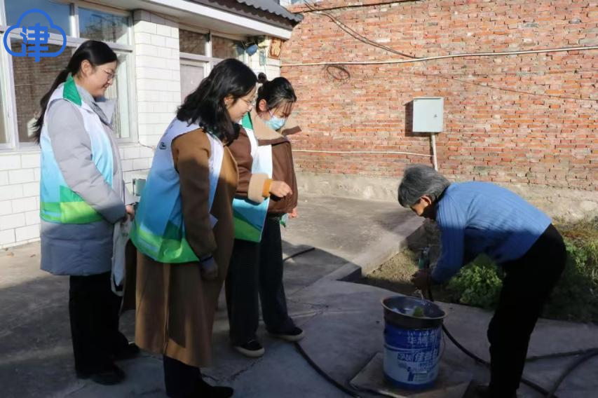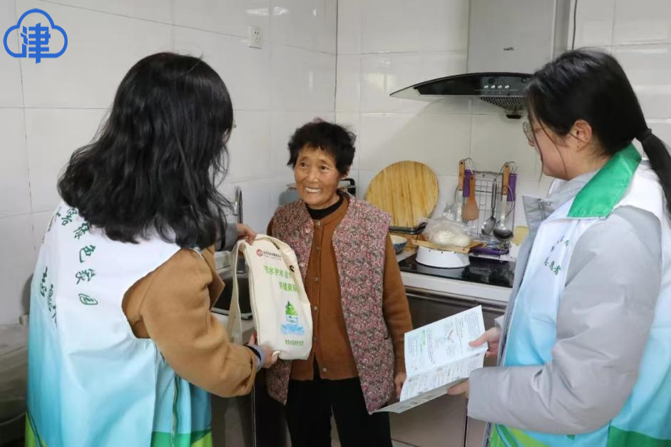 竣工儀式結束後,天津市人民政府外事辦公室及六道街村志願者迅速分組,深入村內20戶村民家中開展節水護水主題宣傳活動。志願者們通過發放宣傳手冊、節水帆布包、雨傘等宣傳物資,向村民普及節約用水小技巧及水資源保護相關知識,引導村民養成“愛水、節水、護水”的良好習慣,讓可持續用水理念紮根農家。