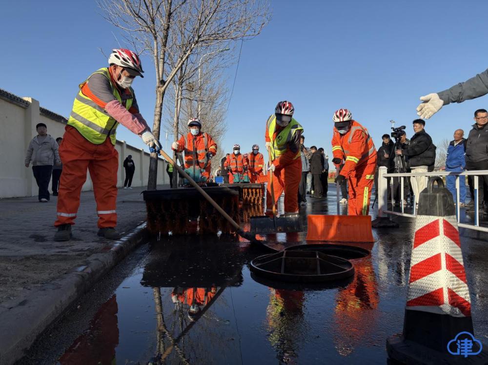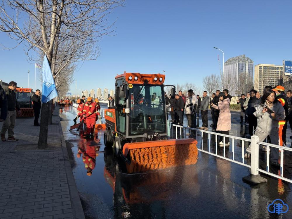 天津北方網訊:初冬寒意悄然臨近,一場與冰雪賽跑的“預演”在我市拉開帷幕。11月20日,天津市清雪指揮部在河西區鄱陽路與國盛道交口組織開展了2025-2026年度清融雪應急演練,系統檢驗清融雪作業流程、裝備效能及多部門協同水平,為今冬明春市民安然出行與城市安全運行提供堅實保障。