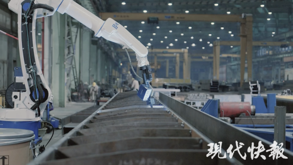 智能化浪潮給邱明輝和他的團隊帶來新的調整。2013年,邱明輝所在工廠引進了一臺焊接機器人,安裝技術員開玩笑說:“機器人來了,你們就要下崗了。”不服氣的邱明輝跟機器人PK,結果是:機器人效率更高,他的焊縫質量更好。“人機大戰”讓邱明輝意識到,改革勢在必行,焊接自動化將成為鋼結構從制造到智造的核心。