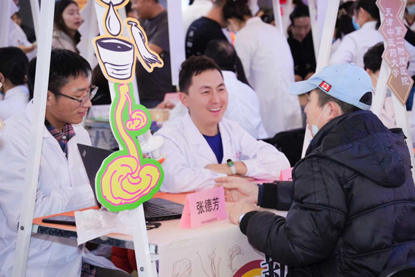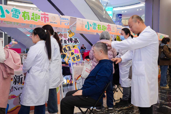 中醫文化市集現場人流如織、藥香氤氳。特色展臺匯聚市屬醫院、老字號企業、非遺單位等多方力量,以七大核心功能全方位呈現中醫藥魅力。科普區通過趣味講座與通俗手冊,讓專業知識“聽得懂、用得上”;老字號展示區設試吃試用專區,直觀展現中藥產品品質;適宜技術體驗區的艾灸、耳穴壓豆等項目,由專業醫師指導,讓市民親身體驗傳統技藝。中藥香囊制作、養生美食、非遺展演等內容適配不同群體,老少皆能樂享;企業洽談區則為健康產業搭建對接橋梁,助力產業協同發展。