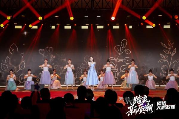 “身處浪潮之中,我如何成為一朵奮勇爭先的浪花?”第三篇章拋出青春之問,以未來職業概念時裝秀、青春分享會等節目形式,展現天津與青年的雙向奔赴——天津成就青年夢想,青年塑造天津未來。三位來自高校科研、天開園創業等不同領域的青年分享了從課堂理論躍入時代浪潮,將個人理想融入國家需要的鮮活故事。尾聲,全場共同唱響《有我》,激勵青年紮實走好腳下的每一步路,勇做時代的“弄潮兒”,將整場活動的氣氛推向最高潮。