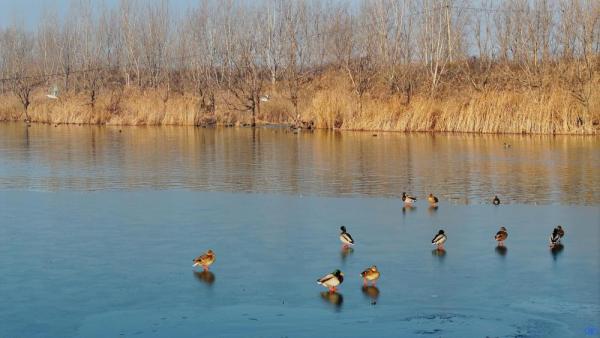眼下,新引河未完全結冰,僅岸邊有些許薄冰,為越冬鳥類提供了理想的活動空間,它們成群結隊地在水中游動、潛水覓食,構成了一幅生動的冬日生態畫卷。除了數量龐大的白骨頂雞,擁有翠綠頭部的綠頭鴨雄鳥、嘴端帶黑斑的斑嘴鴨也點綴其中,構成一幅多彩的生態畫卷。