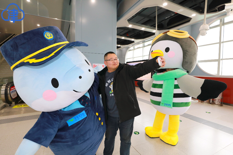 天津北方網訊:1月18日,隨著天津市軌道交通Z4線首發列車在北塘站平穩駛出,天津濱海新區首條城市軌道交通線路順利開通初期運營。開通首日,市民們紛紛專程體驗新線路,與“驚喜”嘉賓“豚津津”“鷗達達”開心合影。