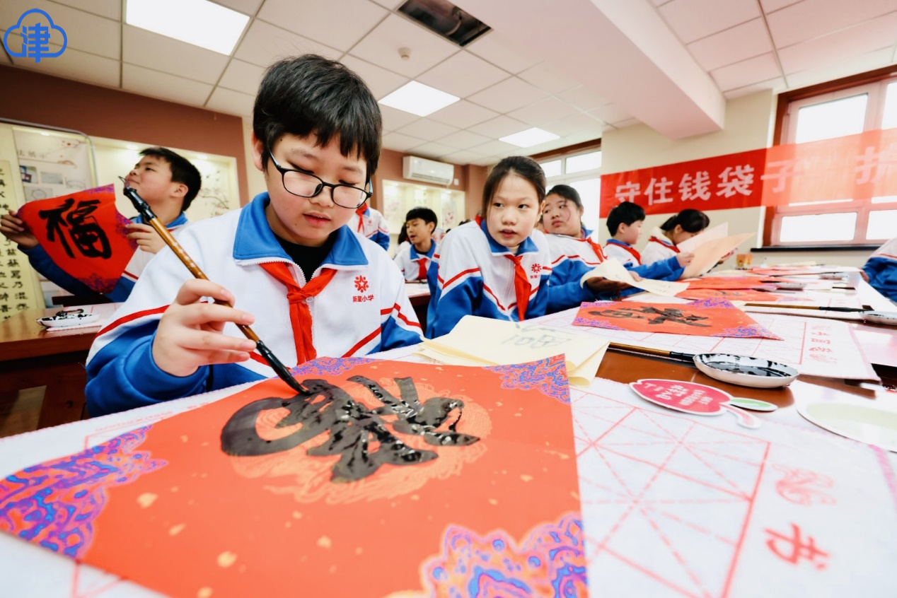 1月19日,在和平區勸業場街新津社區的支持下,和平區新星小學於本學期最後一節美術課上,舉辦了一場別開生面的“墨香傳福韻 財商護成長”少兒書法財商嘉年華活動。活動將傳統書法文化與金融安全知識相結合,為學生帶來了一節兼具文化傳承與生活教育意義的特色課堂。