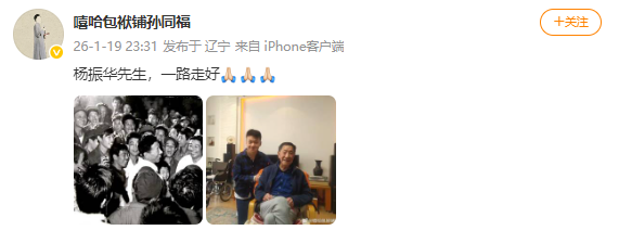 據沈陽日報1月20日消息,1月19日,著名相聲表演藝術家楊振華先生在沈陽逝世。